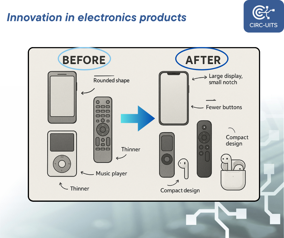The evolution of electronic devices reflects continuous innovation in design and functionality. Over the years, phones, remote controls, and music players have become thinner, more compact, and feature fewer physical components, while offering enhanced performance and connectivity.