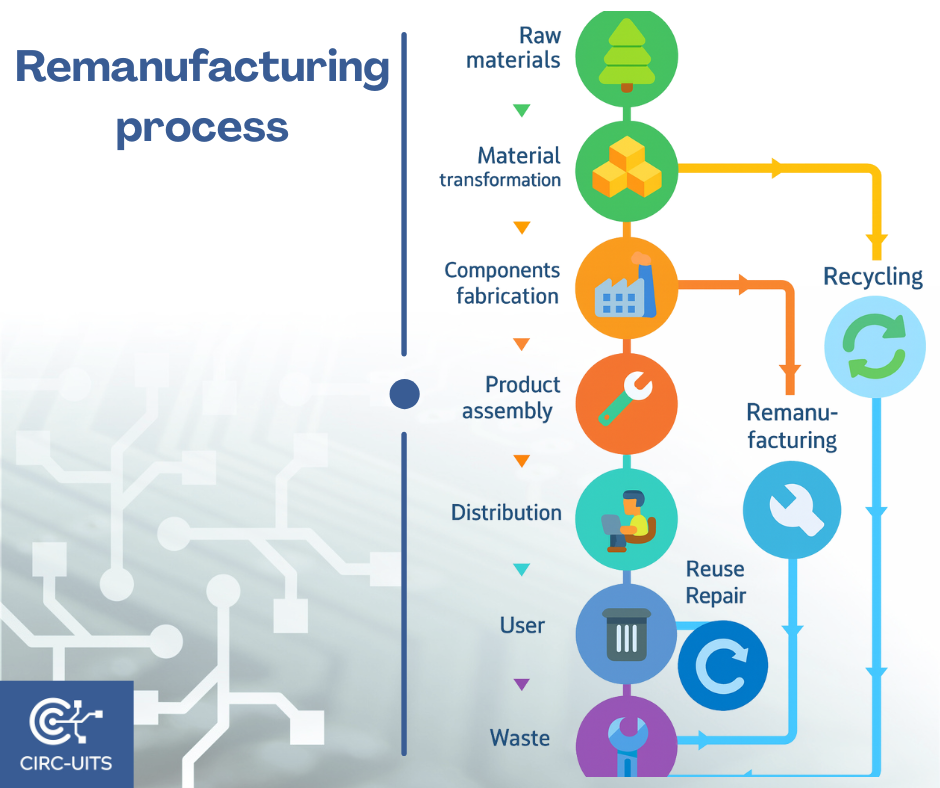 In the context of the CIRC-UITS project, remanufacturing embodies the principles of resource efficiency, innovation, and sustainability. It helps reduce raw material consumption, minimizes waste, and supports greener industrial practices — essential steps toward a more sustainable and competitive European electronics sector.